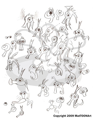 I wanted to take a break from creating characters from animals, so I took a stab at creating a character out of a plant. Low and behold, Vince the Venus Fly-trap. Above, you can spot where I have some different head designs.