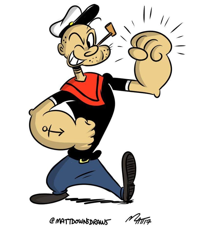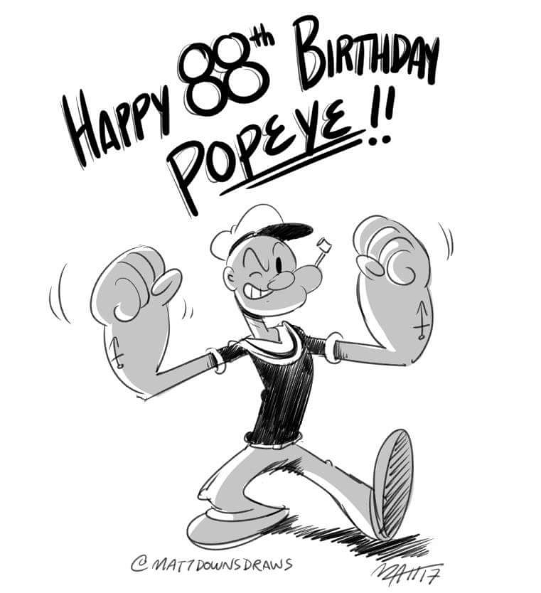 Some more Popeye in honor of his 88th Bday! If you know your Popeye cartoons, then you’ll know that I combined the classic 1930’s comicstrip/Fleischer design and the streamlined Golden Age era Famous Studios design to fit my drawing style, as well as some modifications of my own.